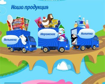 Уникальный мультипликационный А*сайт-простыня для «Минского хладокомбината № 2», известного еще как «Два весёлых снеговика». Концепция «рожок мороженного» и полноценный каталог для B2B-презентации оптовым партнёрам.